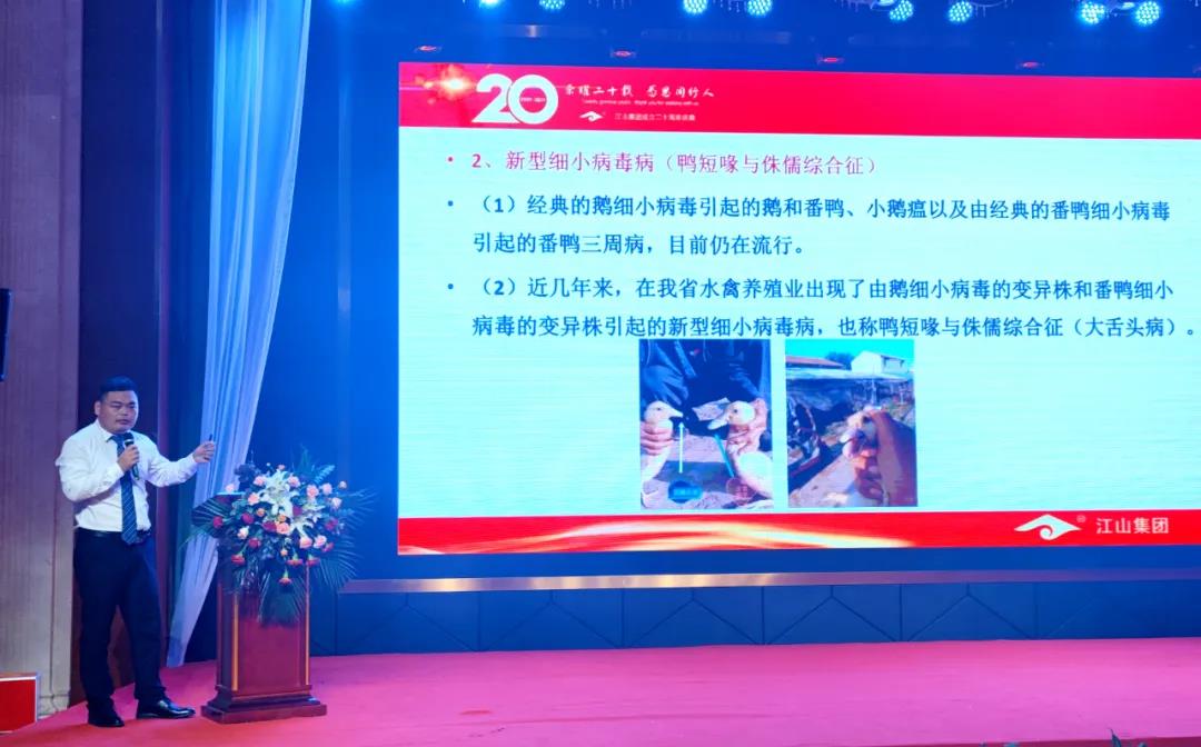 江山藥業(yè)研發(fā)總監(jiān)、副總經(jīng)理孟志敏在會上也為各位合作伙伴傳經(jīng)送寶,介紹了近年來的禽病流行趨勢和治療方案。
